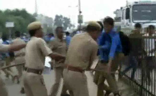 A group of students protesting outside their school in Bhiwari in Rajasthan were lathicharged by the police today. The principal of the government school was among the men caught on camera beating up the children, who were demanding against a shortage of teachers.