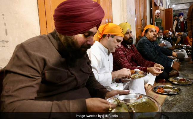 The Congress leader, who is on a day-long visit to the state, had langar at Sri Harmandir Sahib along with the party candidates in Amritsar. Congress Punjab chief Navjot Singh Sidhu was seen sitting next to the Congress leader during the langar at the community hall in the video shared by the Congress MP from Kerala's Wayanad.