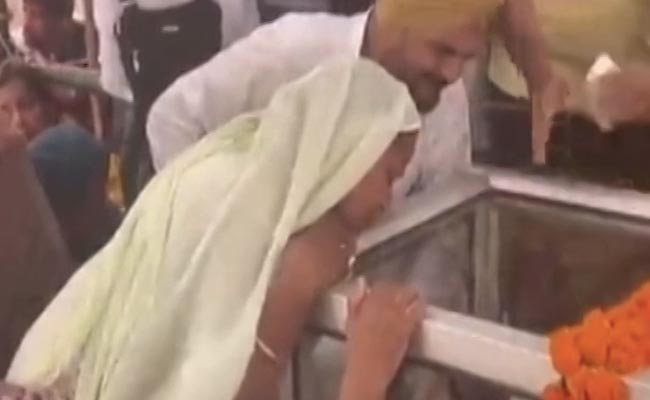 Visuals showed Sidhu Moose Wala's mother hugging the glass coffin in which his body was kept. She kept staring at her son. As his father broke down, she turned to wipe his tears.