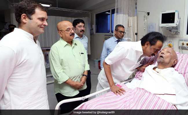 Congress President Rahul Gandhi today visited M Karunanidhi at a hospital in Chennai, where the DMK chief has been admitted in intensive care for the last four days. Mr Gandhi enquired about Karunanidhi's health from the doctors as well as his son and DMK leader MK Stalin.