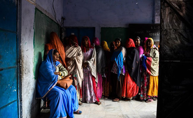 Shajha, a 105-year-old woman, casts her vote at a polling booth in Kishanpura, Jaipur. "There is no facility of wheelchair in this polling booth. We had to carry her inside the polling station so that she could vote" her family member said.