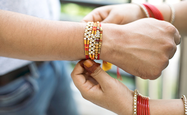The auspicious festival of Raksha Bandhan is celebrated in the month of Shravan – generally in August. The festivity marks the beautiful relationship between a brother and sister. On this occasion, sisters tie a thread, known as rakhi, on the wrists of their brothers and pray for their good health and prosperity. Sisters also apply tilak on their brother's forehead and they exchange sweets and gifts with each other.