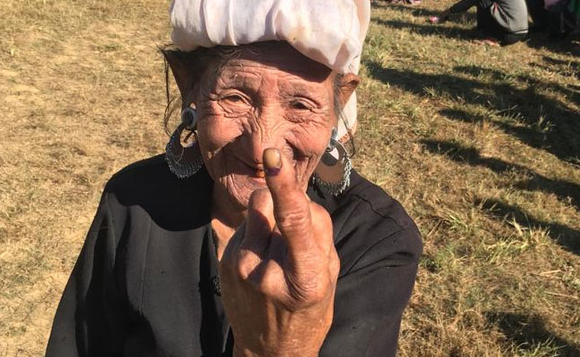 Some women voters carrying their children in their laps went to the Mizoram border village to exercise their democratic right.
