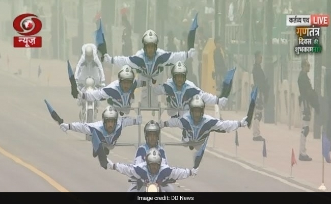 Several other formations, that included human pyramids, and formations including many held together in delicate balance while their motorcycles rode down the Kartavya Path, the revamped ceremonial boulevard from the British period once known as the Rajpath, draw cheers from the audience.