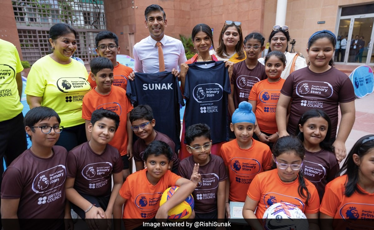 British Prime Minister Rishi Sunak, on his first India visit since becoming the UK PM, shared his delight at meeting the students and staff at the British Council in Delhi, calling them "the world leaders of tomorrow". He called the little ones "a living bridge between the UK and India".