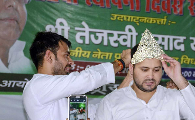 "Tejashwi has a long way to go," the older brother said, before tying a crown with a string .