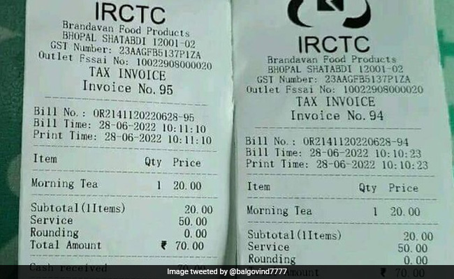 It is a known fact that food on a flight is expensive. But food during train travel is thought to be subsidised. If you hold the same belief, you are in for a shock. A photo shared by a passenger on social media shows that he was charged Rs 70 for a cup of tea. The tea was for Rs 20, but the bill also included a service charge of Rs 50.