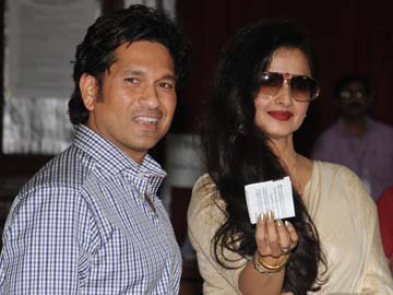 Sachin Tendulkar and Rekha, both Members of Parliament, vote during the Vice Presidential elections at Parliament in New Delhi on August 7, 2012