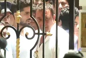 As he left the Imperial Heights building in Bandra, he was accompanied by wife Manyata, film director Mahesh Bhatt and some family members. Wearing a while kurta and blue jeans, he was seen holding Manyata's hand. (Live blog)