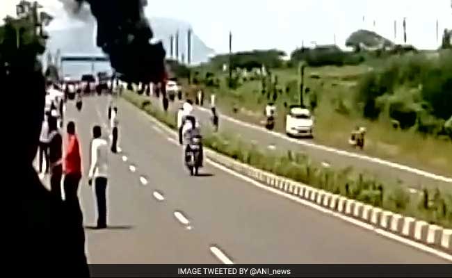 The National Highway 3, Mumbai-Agra highway, was blocked for nearly the whole day by a section of protesters, who even set several police vehicles on fire since last night.