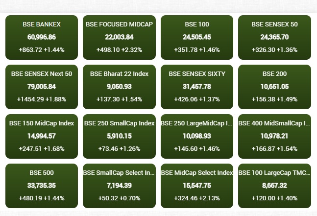 At 3:00 pm, the Nifty50 was trading 0.73 per cent or 167.45 points higher at 23,169.60, and the Sensex was trading 0.36 per cent or 267.72 points higher at 74,474.96.