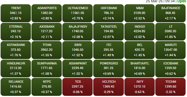 Stock Market Highlights: After a green-run on Tuesday, markets ended positive on Wednesday as well. This comes amid positive investors' sentiment as US President Donald Trump paused strikes on Iranian energy sites for 5 days. Reports claiming ongoing US-Iran negotiations also lifted spirits.