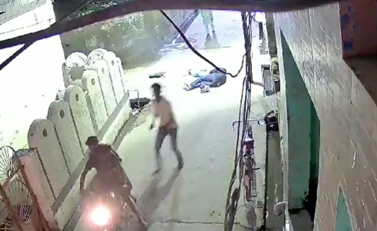 CCTV footage show the victim walking on the road in a narrow alley when a man, coming from the opposite end, pulls out a gun and shoots him from close range. The victim immediately collapses on the floor, and so does his daughter, before the attacker hops on a bike carrying two other men and flees the spot.
