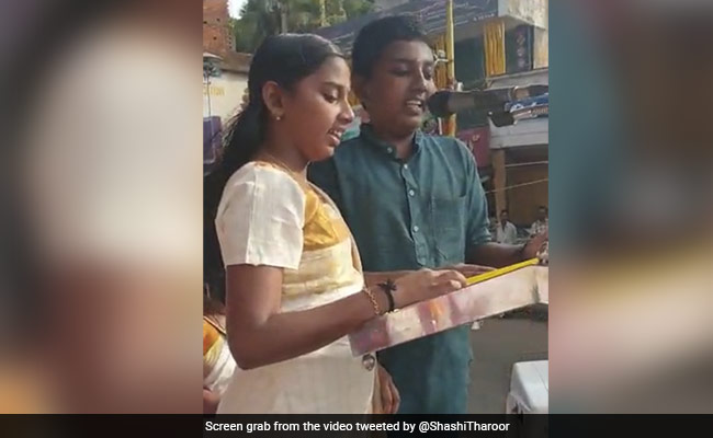 Congress MP Shashi Tharoor today shared a video of two school students singing a Malayalam song during a function that the leader was attending.