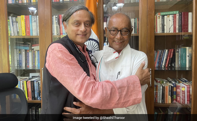 Amid hectic meetings in the run-up to the Congress president election, senior party leaders Shashi Tharoor and Digvijaya Singh -- both contenders for the top post -- met and wished each other the best for the upcoming contest.