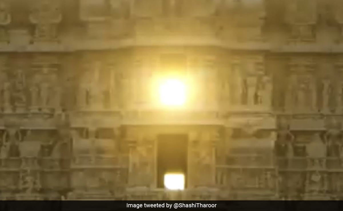 "Landed in Thiruvananthapuram on a special day - September 23, the autumnal equinox, is one of the two days of the year when the sun appears sequentially in each of the windows of the Gopuram of the Sree Padmanabhaswamy temple. Just amazing to think the Gopuram was rebuilt 260 years ago with none of today's technology available, and they got it perfectly aligned with the sun's course. This pic was at sunrise. The sun will appear in the fourth window at dusk, as it sinks into the horizon," the MP wrote while sharing the picture on X, formerly Twitter.