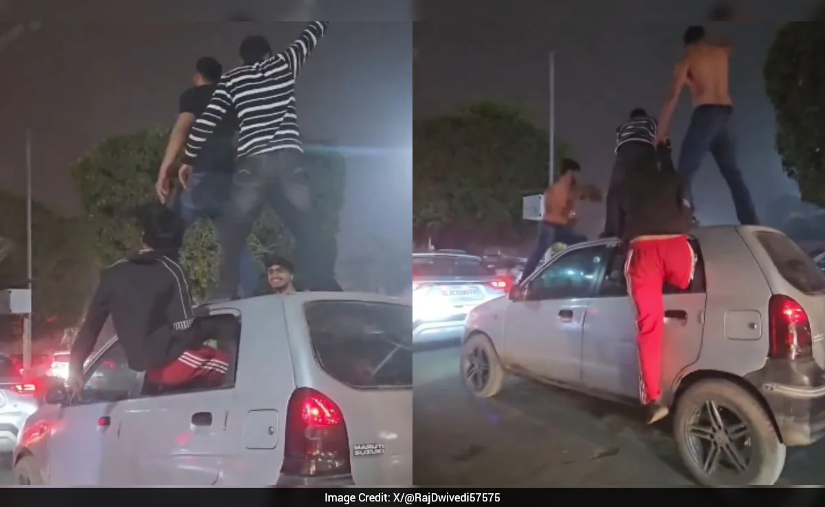 The Noida Traffic Police issued a Rs 67,000 e-challan on New Year's Eve after six individuals were spotted dancing atop a moving car on a local highway. The group, allegedly intoxicated, obstructed traffic and caused a significant jam through their antics as the other car passengers recorded the entire incident.