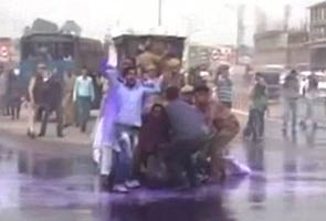 Protesters condemning the controversial shootout clashed today with security forces, who used water-cannons and batons to control a crowd that tried to march towards the civil secretariat.