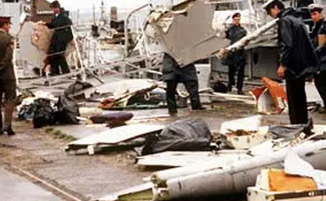 The plane was flying 31,000 feet above the Atlantic Ocean when a suitcase bomb exploded in the front cargo, killing all on board.