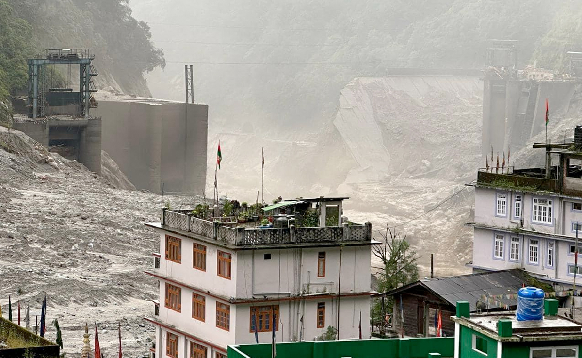 A cloudburst in Sikkim triggered a massive flash flood on Wednesday leading to the Teesta river flowing at the danger mark. The swollen river waters also washed away parts of the Teesta Dam at Chungthang, the biggest hydropower project in Sikkim.