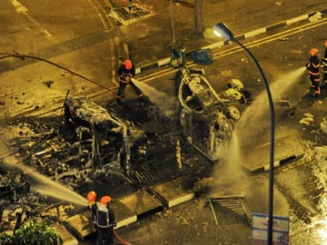 File photo of burnt vehicles after a riot broke out in Little India in Singapore