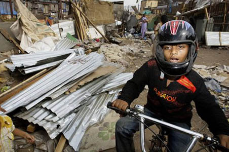 "I was sleeping. A cop came and said, do you want to die, the bulldozer is coming!" the childhood star of Slumdog Millionaire says.