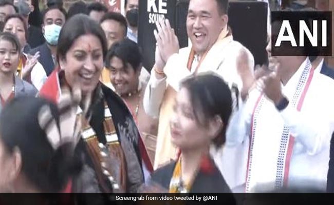 BJP leader Smriti Irani joined local artists in a traditional dance at an event in Imphal on Friday. In a video shared by news agency ANI, the Union Minister for Women & Child Development is enjoying herself as she matches her steps with the beats. People in the background are seen clapping and applauding her.