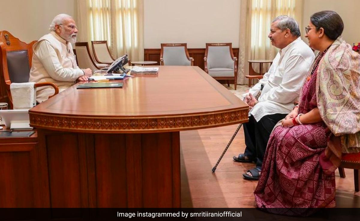 Union Minister for Women and Child Development Smriti Irani shared a special picture on her Instagram handle which featured her father and her "boss" Prime Minister Narendra Modi. The photo shows Ms Irani sitting beside her father while PM Modi sat across from them.