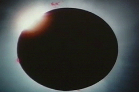 A total eclipse occurs when the Sun is completely obscured by the Moon. The intensely bright disk of the Sun is replaced by the dark silhouette of the Moon.