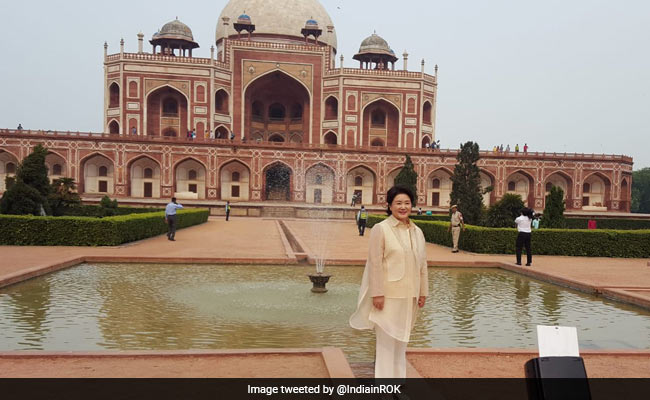 The South Korean first lady visited the Humayun's Tomb, the 16th century monument dubbed as the 'Dormitory of the Mughals' in the evening spent nearly 45 minutes in the UNESCO World Heritage complex.