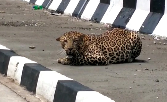 A leopard was spotted on a highway near the Pench Tiger reserve in Madhya Pradesh. Visuals showed the leopard resting at the side of the National Highway-44, a four-lane highway in Seoni district.