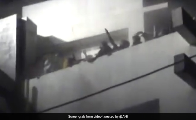 A video released by ANI showed a group of people standing on the roof of the building as they call for help. The workers were seen waving their hands to grab the attention of the firemen on the ground.