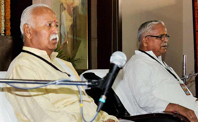 Mohan Bhagwat (left) and Suresh Bhaiyyaji Joghi (right) during RSS meeting in Nagpur. (PTI photo)