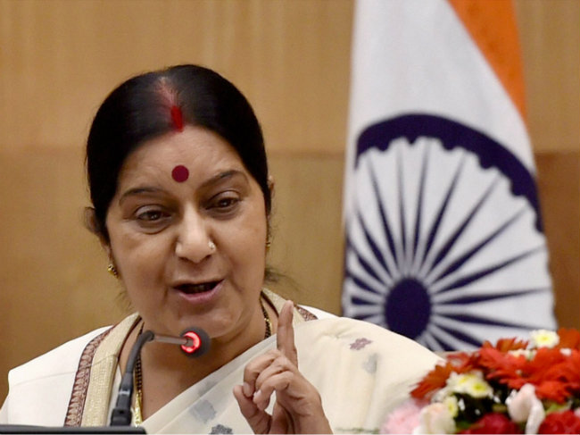 Sushma Swaraj at Jawaharlal Nehru Bhawan in New Delhi. (Press Trust of India)