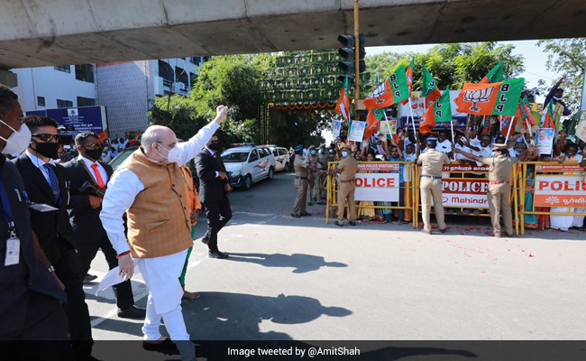 In an unprecedented move earlier, Amit Shah was received by Mr Palaniswami, Mr Panneerselvam, senior cabinet members and BJP state chief L Murugan among others on his arrival from Delhi, before proceeding to his hotel.