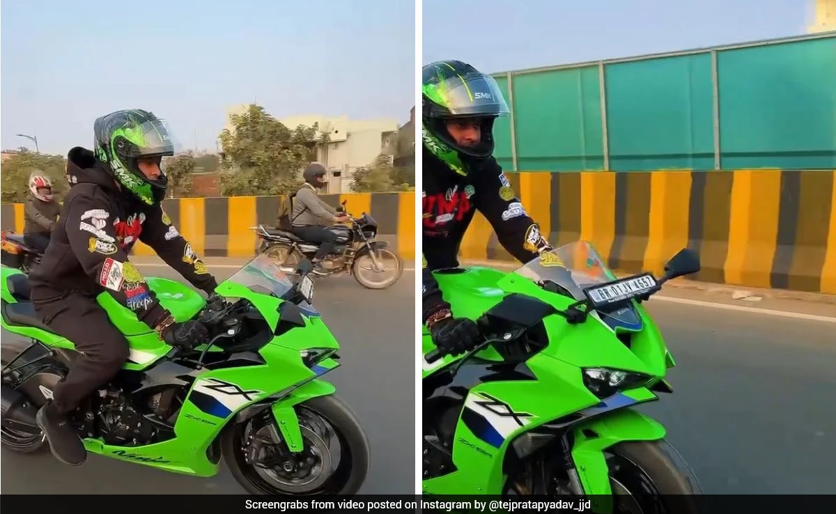 Make way for "rider bhaiya" Tej Pratap Yadav, as he zooms into your social media feed on his Kawasaki Ninja ZX-6R superbike. Lalu Prasad Yadav's eldest son, Tej Pratap, has purchased a Rs 15 lakh sports bike and he cannot stop riding and flaunting.