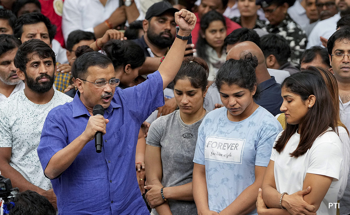 Delhi Chief Minister Arvind Kejriwal met wrestlers protesting against the sports federation chief Brij Bhushan Sharan Singh over alleged sexual harassment and asked people to support the country's top athletes in their protest.