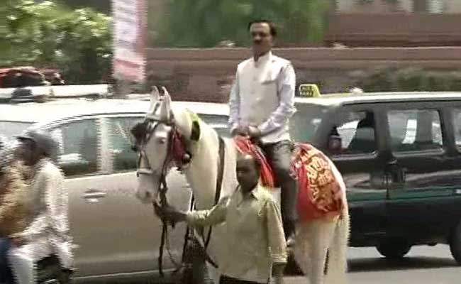 To register his protest against the Delhi government's odd-even rules for cars, BJP lawmaker Ram Prasad Sarmah today chose to ride a horse to Parliament.