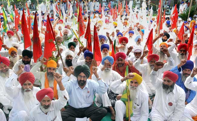 File photo: Farmers holding a protest outside the Deputy Commissioner's office against Union and State Governments in Amritsar. (Press Trust of India)