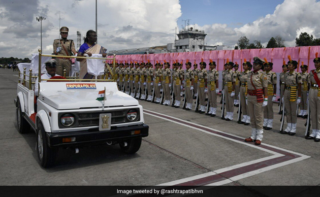 Droupadi Murmu, India's first Tribal President, was today given an all-women "guard of honour" in a special gesture by Tripura Police on her arrival in Agartala.