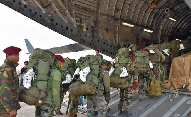 The relief material being loaded onto Indian planes