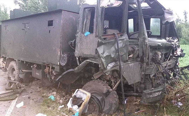 The armoured vehicle of the 44 Rashtriya Rifles was attacked near the Arihal village of Pulwama, where a convoy of the Central Reserve Police Force was attacked by a suicide bomber in February. Six soldiers and two civilians were injured in the Monday's attack and two soldiers died of their injuries, officials said.