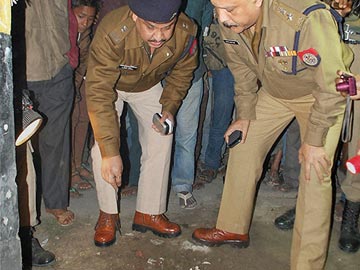 Police inspecting the site of the bomb blast which claimed the life of a 14-year-old at Amulapatty in Dibrugarh on Tuesday.