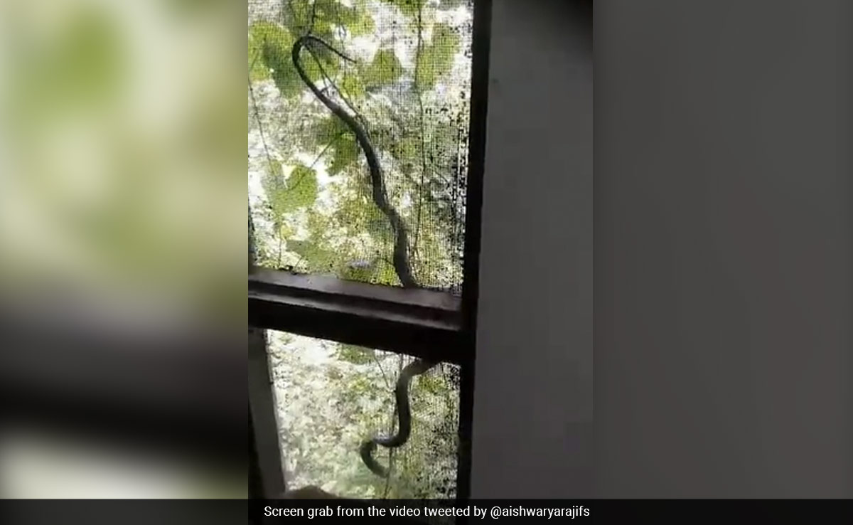 Indian forest officer, Aishwarya Raj, captured a video that showed the long snake slithering over the net door of the office. Thankfully, the snake didn't enter the room and went back to the Sal forest on its own after a while.