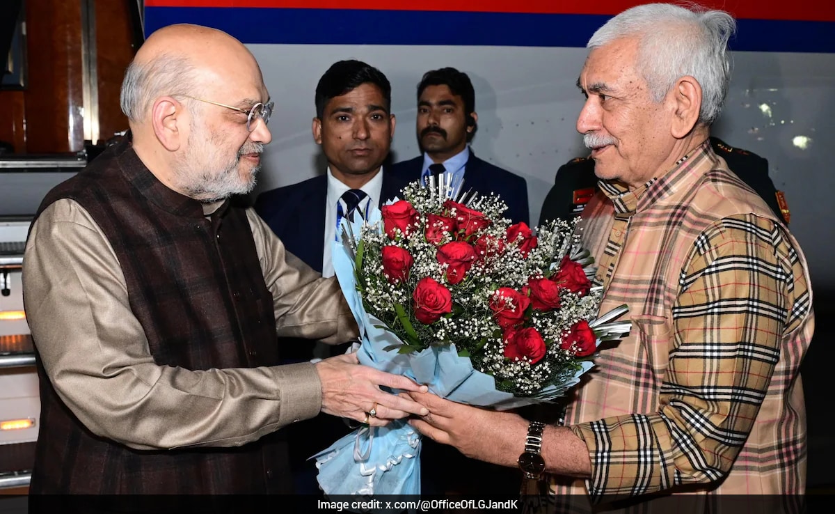 Amit Shah reached Jammu late Thursday night and was received by Manoj Sinha, Chief Minister Omar Abdullah and senior BJP leaders, including Leader of Opposition in the Assembly Sunil Sharma.