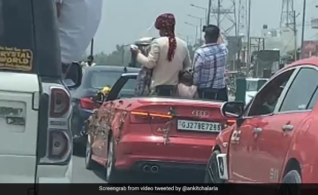 A groom's grand wedding procession has cost him Rs 2 lakh in Uttar Pradesh. The groom, along with his friends, was seen dancing in an open roof Audi on a busy road in Muzaffarnagar in a video that has now gone viral on social media.