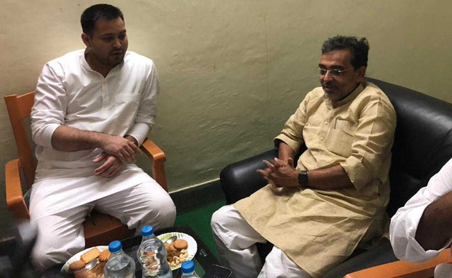 Hours after BJP president Amit Shah and Janata Dal(United) chief Nitish Kumar announced a 50-50 seat-sharing formula in Bihar for the Lok Sabha elections, Upendra Kushwaha -- president of alliance partner Rashtriya Lok Samta Party -- met opposition Rashtriya Janata Dal (RJD) leader Tejashwi Yadav in Arwal district today. The interaction triggered speculations of discontent in the state's National Democratic Alliance (NDA) grouping.