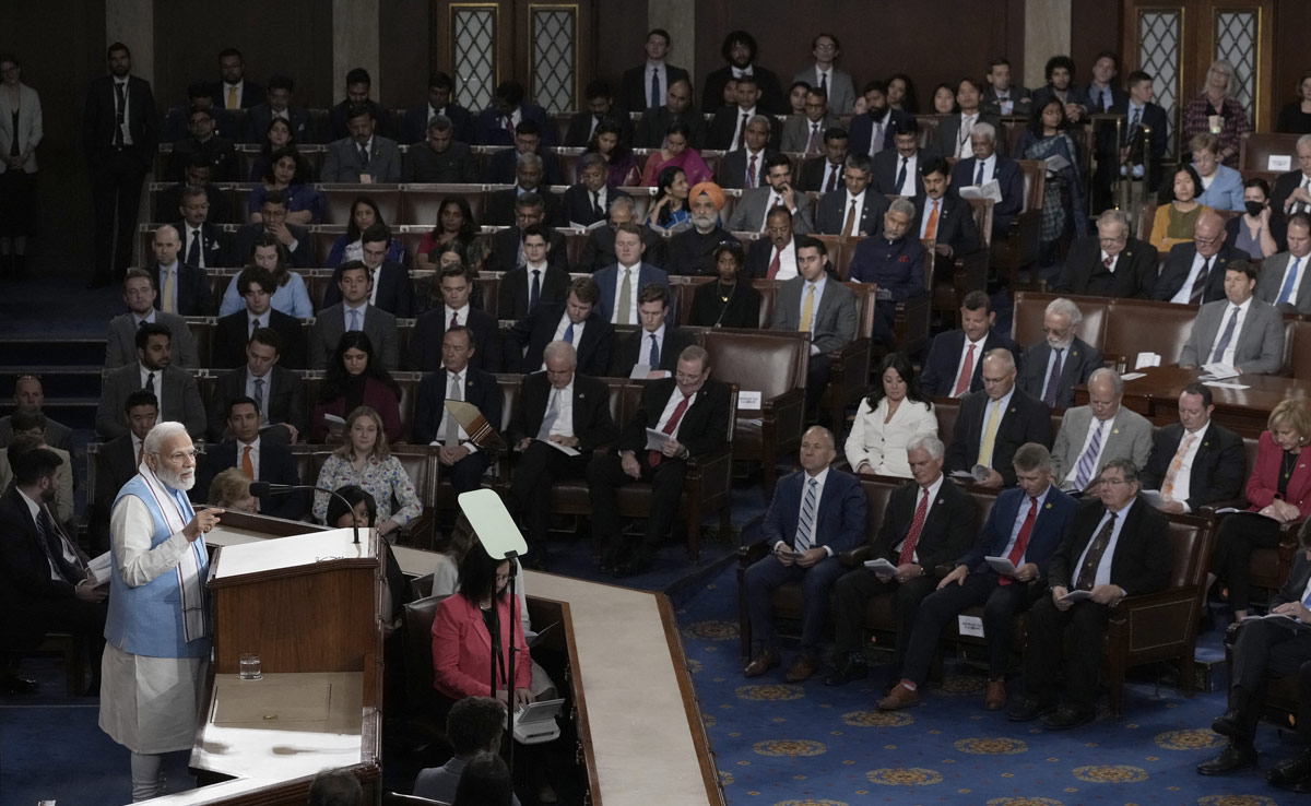 Prime Minister Narendra Modi addressed a joint session of the US Congress on Thursday. He emphasised India's commitment to climate goals, women's empowerment, the fight against terrorism, and other important issues.