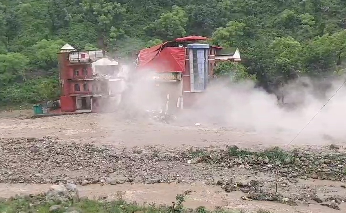 Amid heavy rain in Uttarakhand, a building of the Doon Defence College in Dehradun's Maldevta collapsed on Monday. The building was washed away by the strong currents of the River Bandal, which was overflowing after continuous rainfall in the state for the last 24 hours.