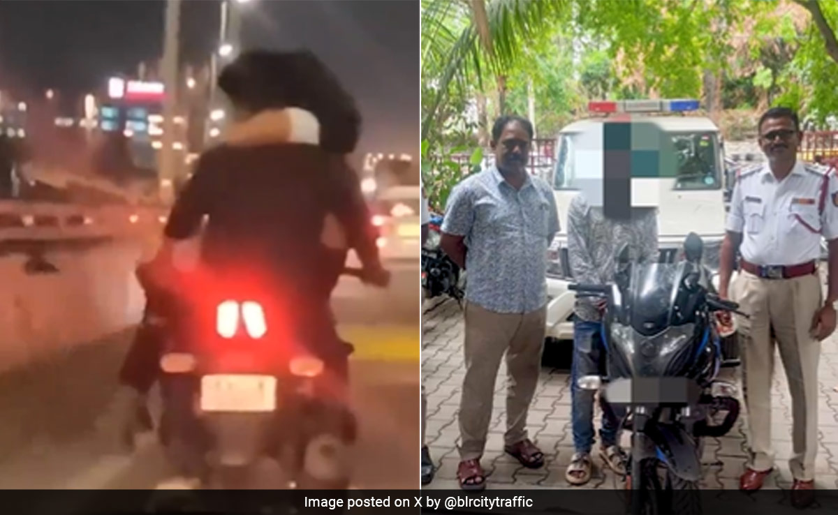 The video was also shared by the Bengaluru Traffic Police on X. As per the clip, the incident happened on May 17 on the Bangalore International Airport road. The video opens to show a woman sitting one-sided on the biker's lap with her hands wrapped around his neck. Both of them were also not wearing helmets.